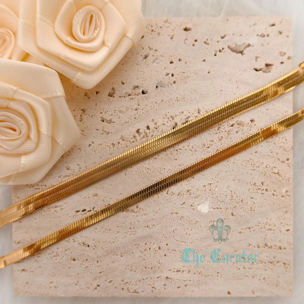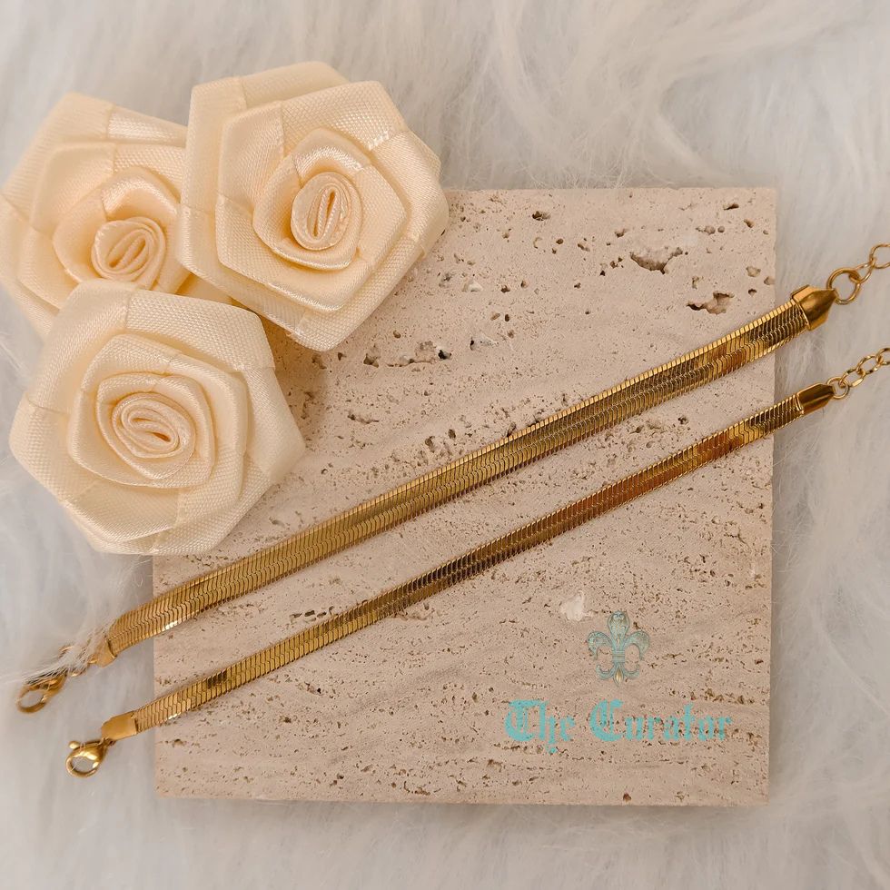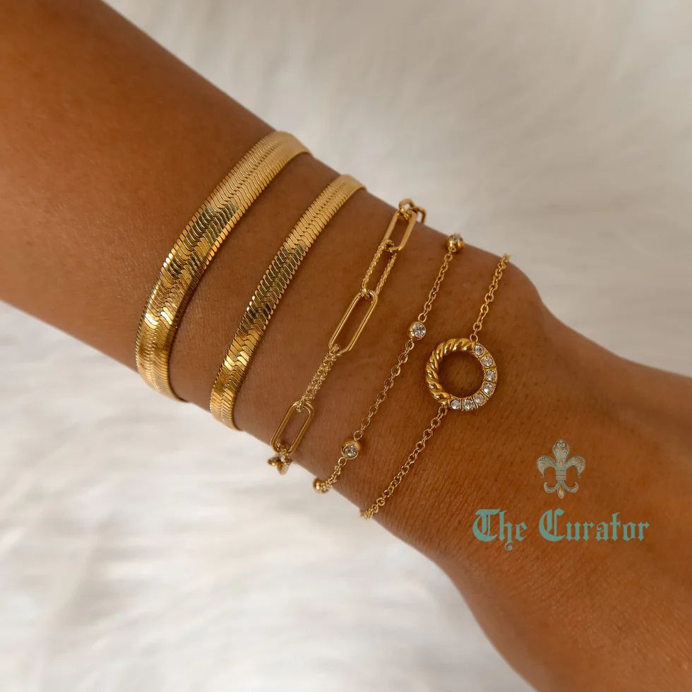 The CELESTE bracelet is crafted with a 4mm and 6mm herringbone chain design. Made with 18k gold on top of durable 316L stainless steel, it offers both style and durability. The 16cm length can be extended up to 5cm for a perfect fit.