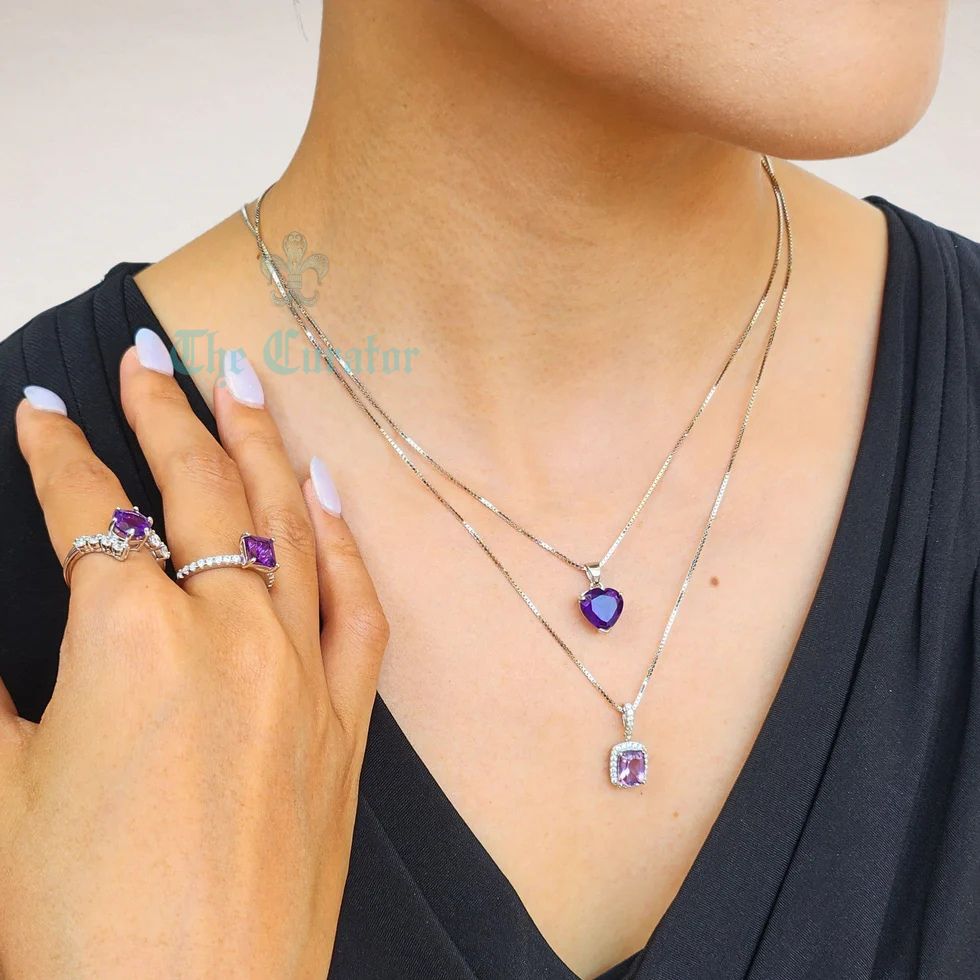 Add timeless appeal to your wardrobe with the DESIRE necklace. Crafted from a heart shape cut amethyst, each stone measures 10mm x 10mm for a minimalist look. Perfect for any occasion, it adds a touch of sophistication to your everyday jewelry.