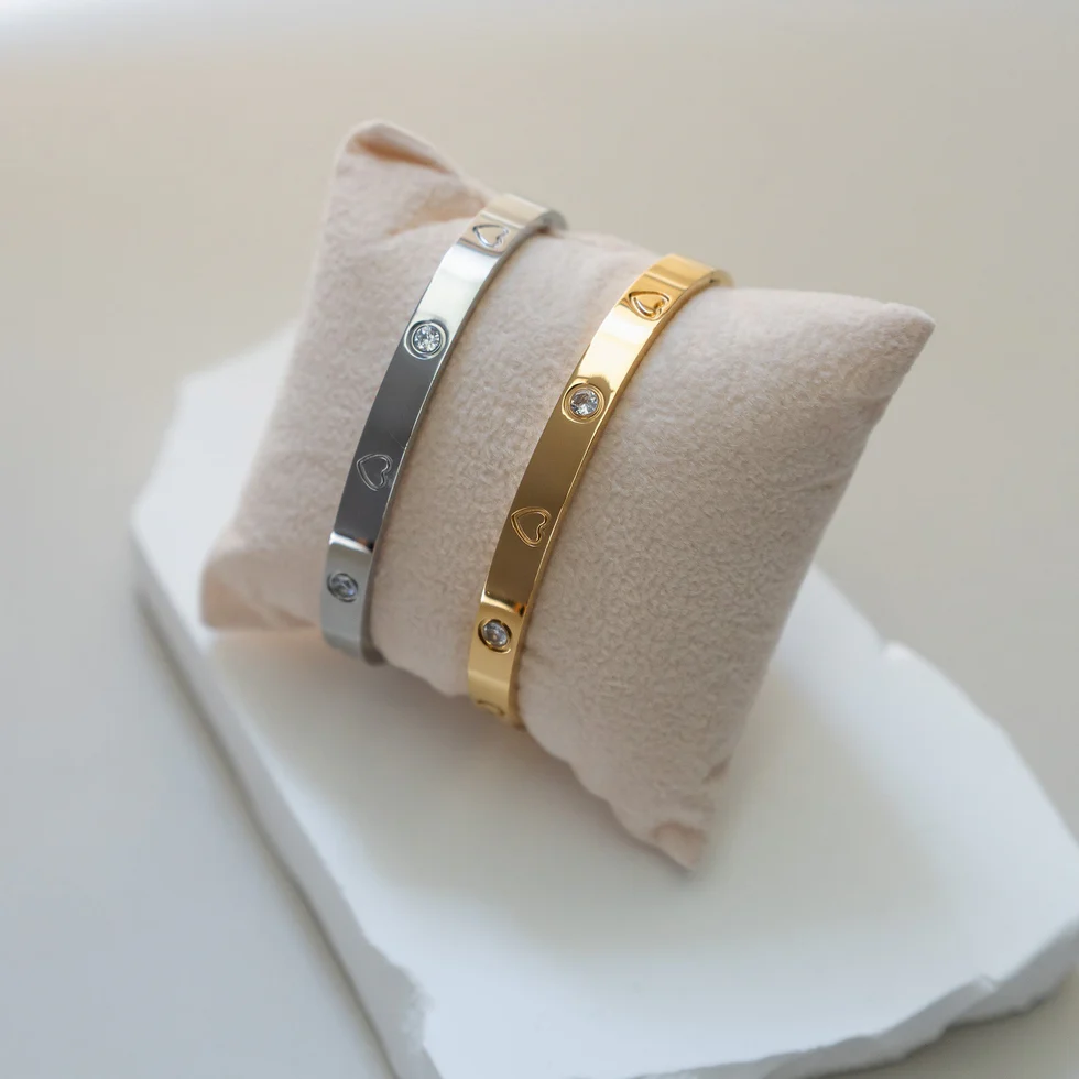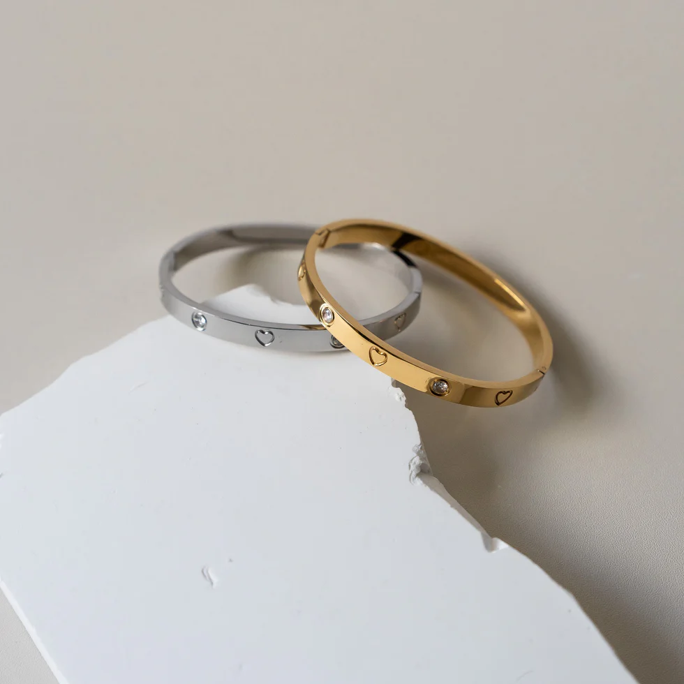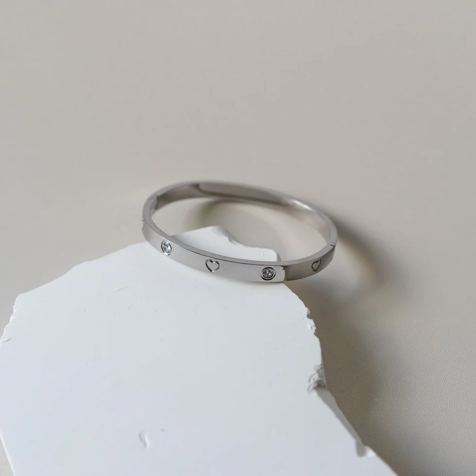 JULIET || HEART AND CZ BANGLE (SILVER)