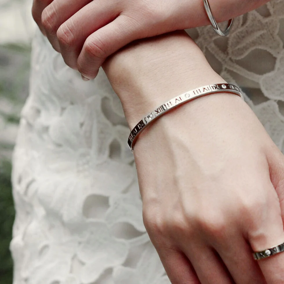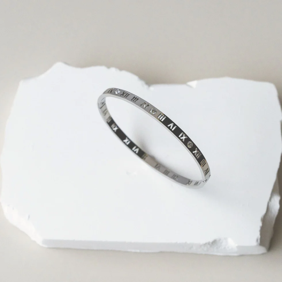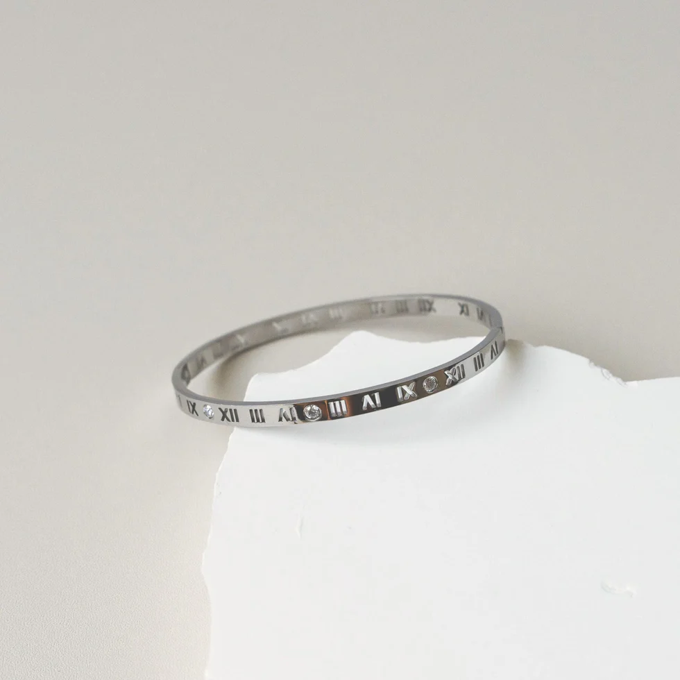 VALERIA || CZ ROMAN NUMERAL BANGLE (SILVER)